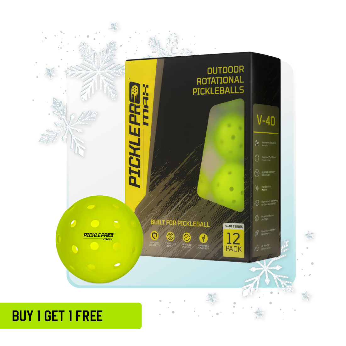 The PicklePro Max 40-Hole Pickleball Balls offer tournament-grade performance through rotational molding technology and premium LDPE construction. These professional pickleball balls feature a softer feel design that enhances control while reducing noise during play. Each 12-pack contains precisely engineered balls weighing 24.3–26.2 grams with a regulation of 7.4 cm diameter, meeting USAPA approval standards for outdoor play.