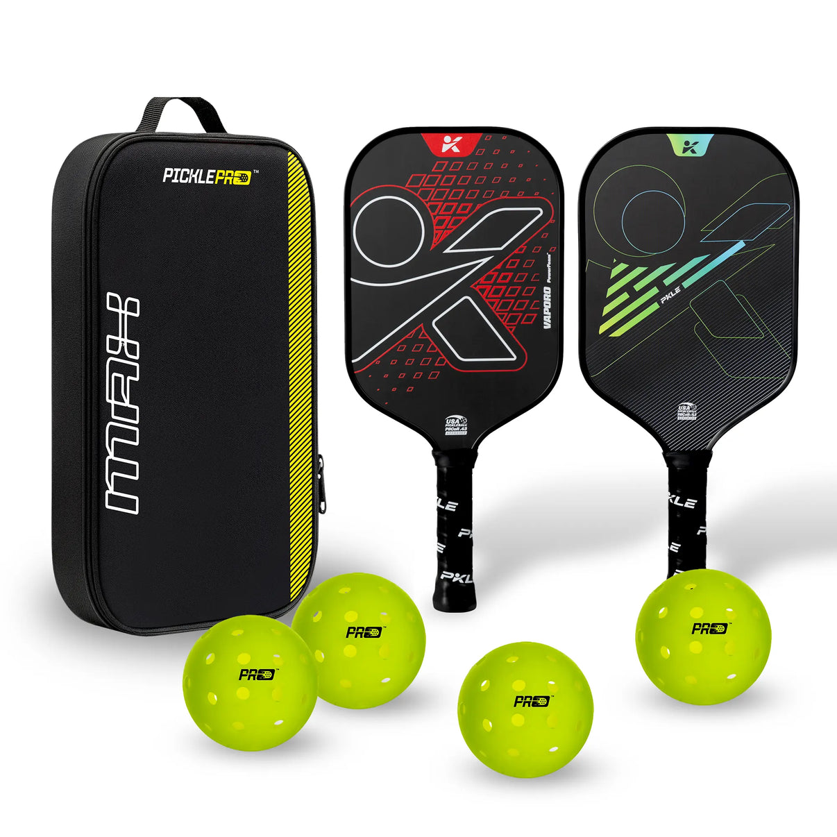 Pickleball Paddle Bundle Set: PKLE Levante Gen 3 Pro and Vaporo PowerFoam with 4 Outdoor Pickleballs + Paddle Bag